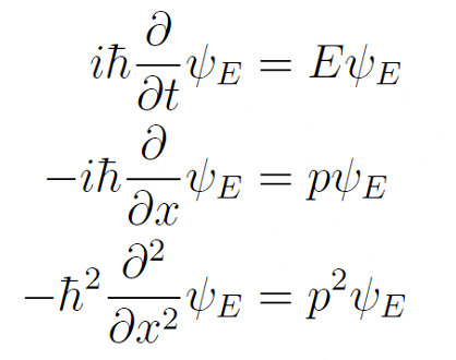 它在量子力学下是否依然满足呢?薛定谔对此作出了勇敢的假设,认为这个关系在非相对论量子力学框架内依然成立。那怎样在波函数上体现出这个关系呢?这就需要先将物质平面波中的动量和能量“取”出来。