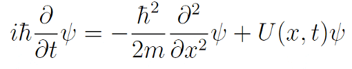 其中 U (x,t) 是势能函数。结合前面的推导,就得到了著名的一维薛定谔方程:
